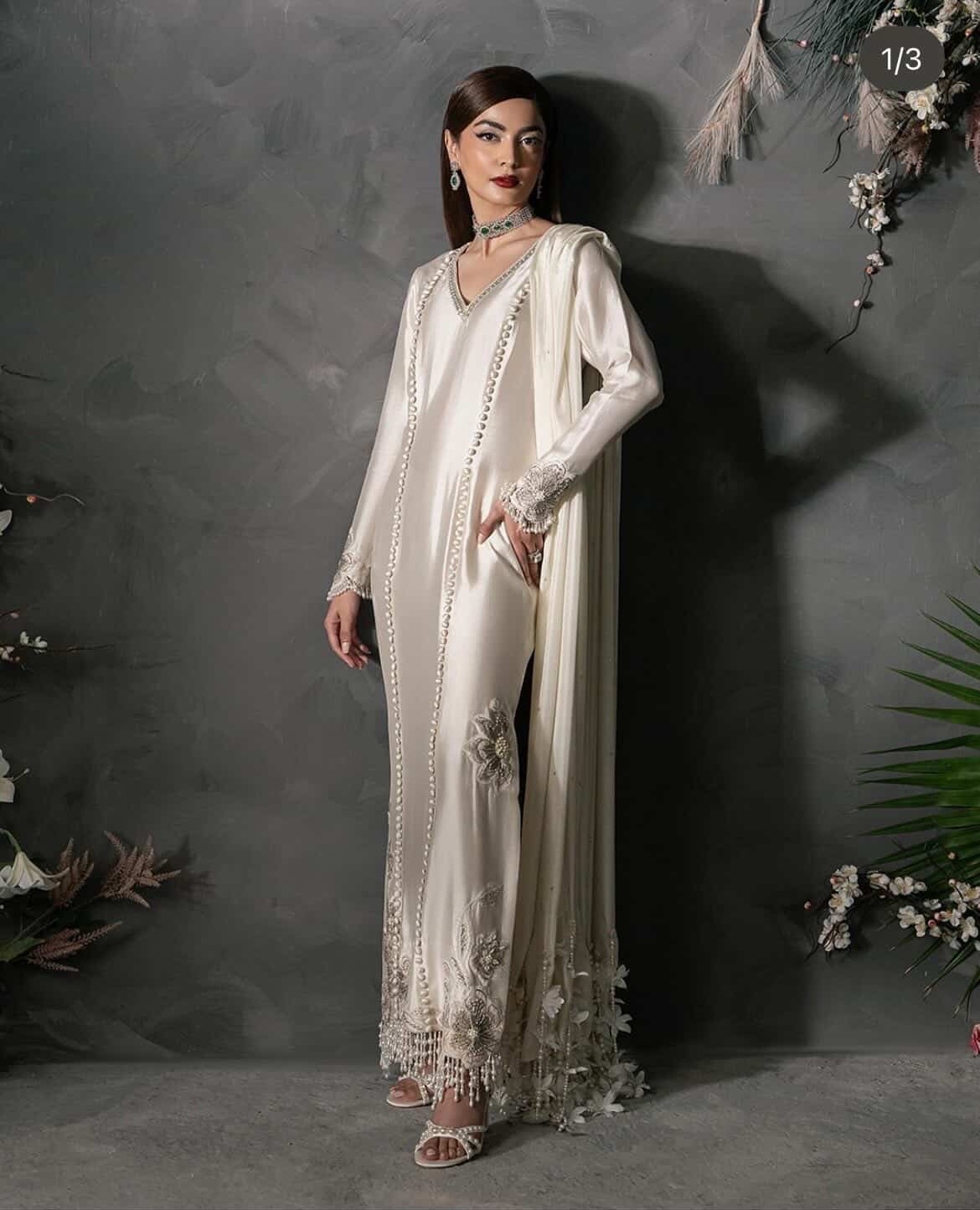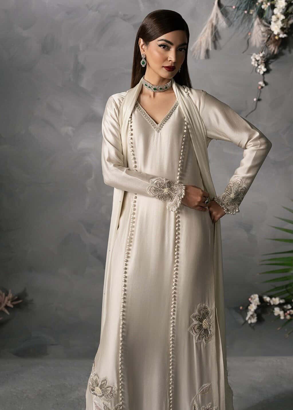 A Visison in off-White Slik.Intricate hand embellishment and refined luxury hanging come together to create a look that embodies thematic elegance and effortless class.
